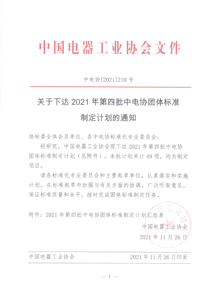 图 | 中电协【2021】210号《关于下达2021年第四批中电协团体标准制定计划的通知》